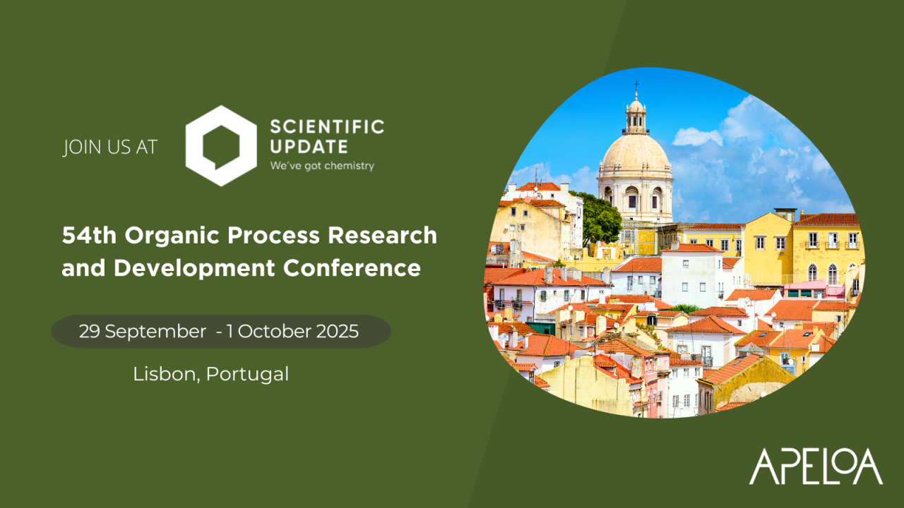 Apeloa is heading to Lisbon for the 54th Organic Process Research and Development Conference.