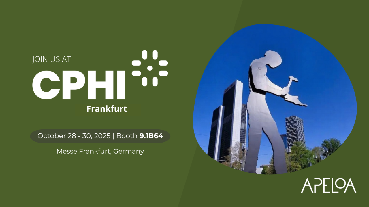 Apeloa is heading to CPHI Frankfurt 2025! Visit us at Booth 9.1B64 from October 28–30, 2025, at Messe Frankfurt, Germany.